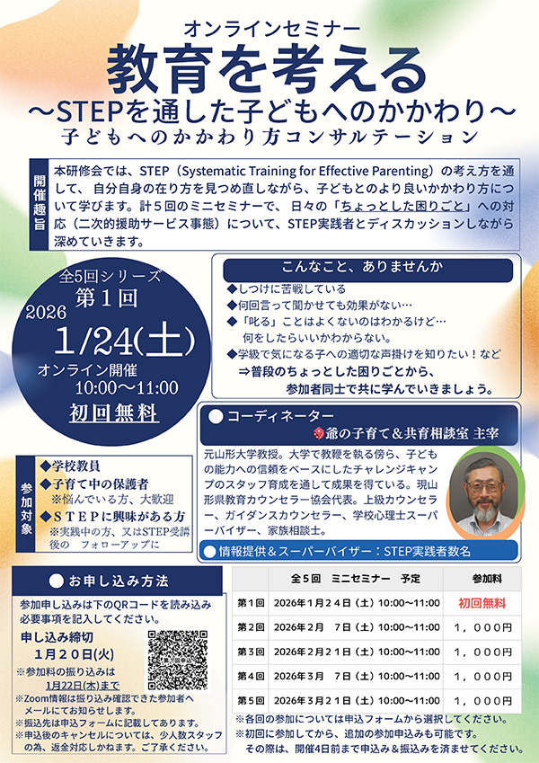- シリーズ教育を考える オンラインセミナー【2026年1月24日】 2026年1月8日
